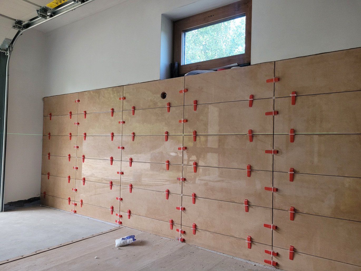 Tymczasem biore sie za klejenie plytek w garazu i maszynowni. *(czas operacyjny 2 tyg przed instalacja kominka i bufora)
