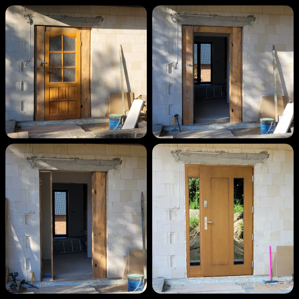 Mamy tez ostatecznie obsadzone (po dluzszej walce) potezne drzwi metalowe z maszynowni oraz nowe drzwi glowne do domu.