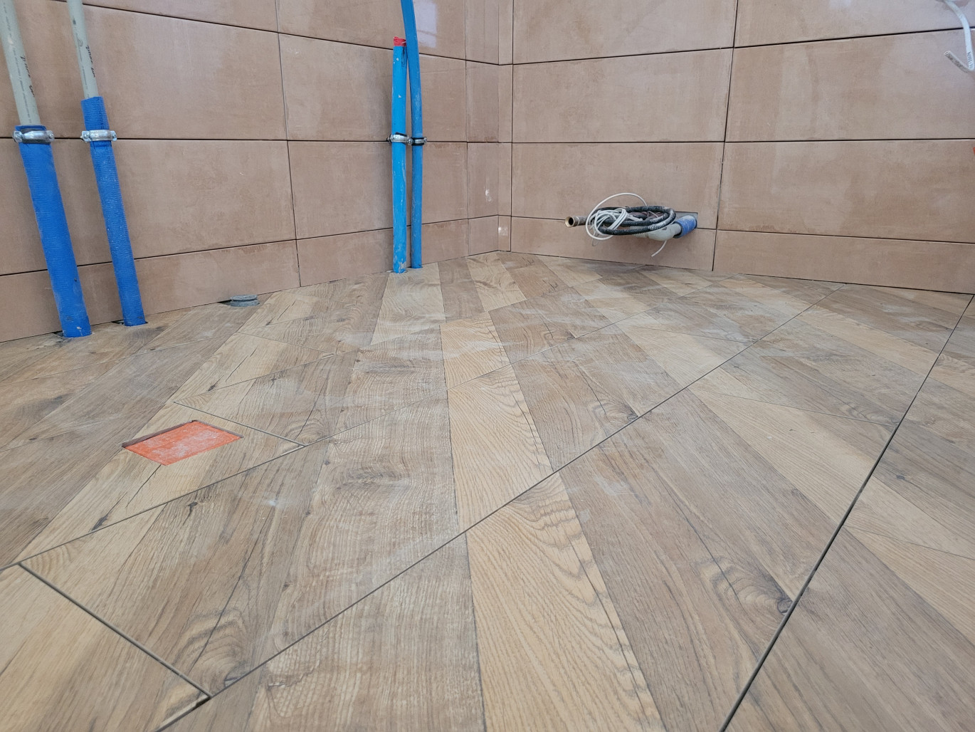 Wreszcie udalo sie polozyc pierwsze  rozgrzewkowe plytki.